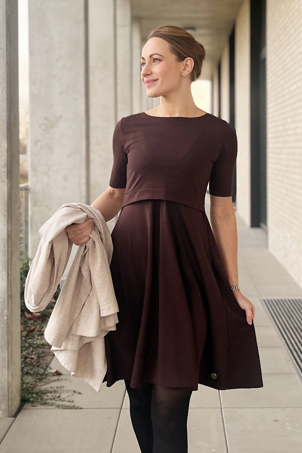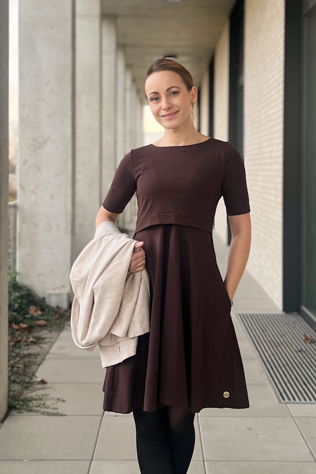 Adaptivní šaty Amalie CHOCOLATE s kapsami