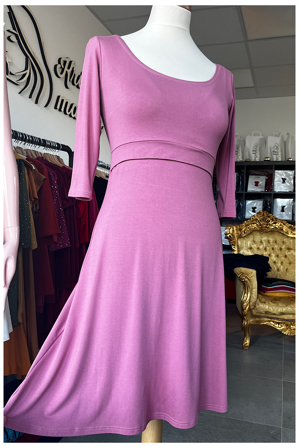 2) Vrchní část pod prsy je zakončena ŠIROKÝM 3CM LEMEM. Ten je nejen praktický pro snadný přístup ke kojení, ale právě díky své šíři krásně vrátí top na obvod hrudníku. Šaty tak dělají krásnou postavu i s poporodním bříškem.