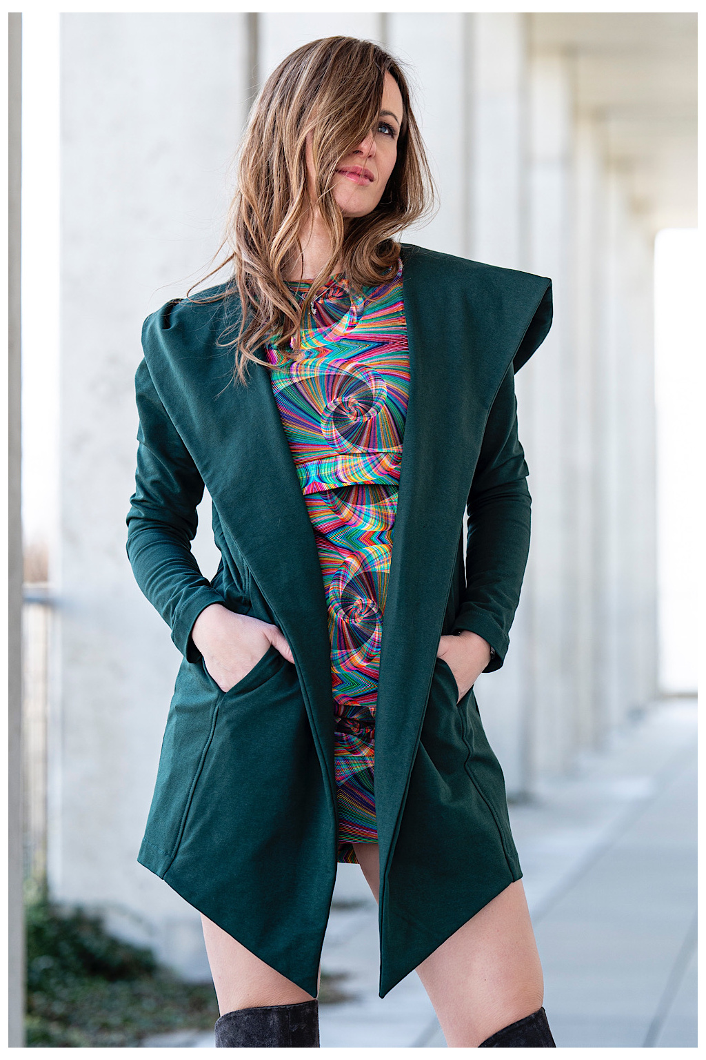Minimalismus s charakterem: Jednoduché linie bez zbytečných ozdob, ale s výraznými prvky – kapuce, kapsy, prémiová nadčasová látka.