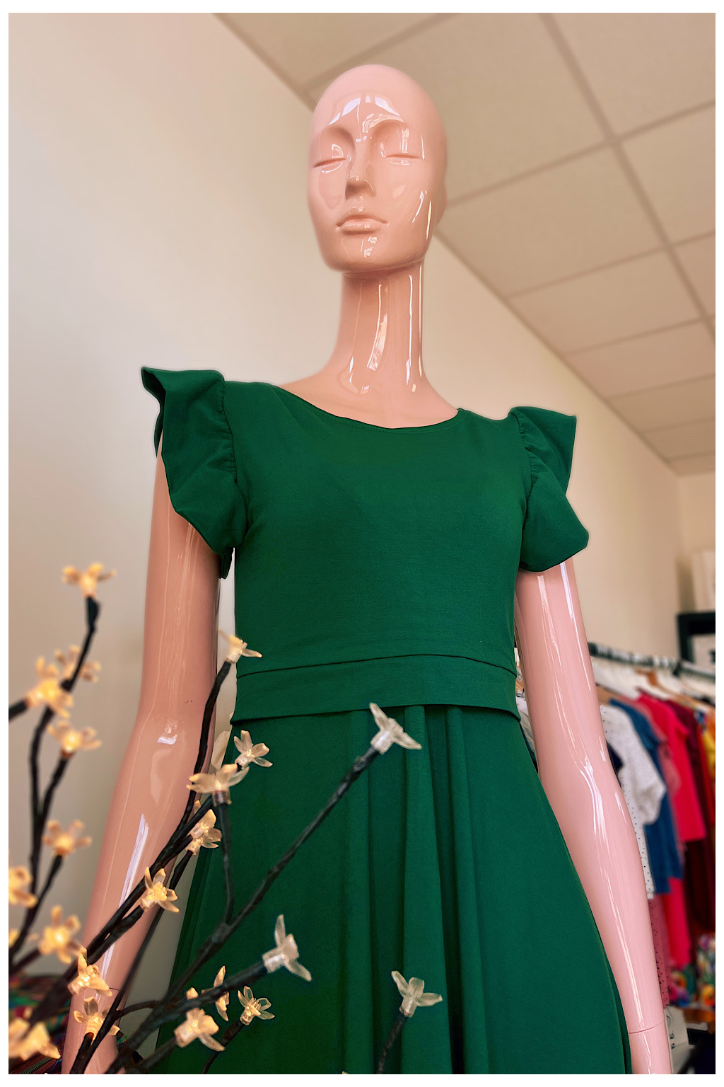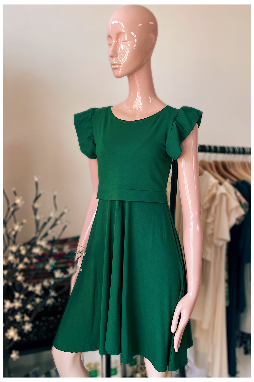 - Éterická tmavě zelená barva a elegantní volánek