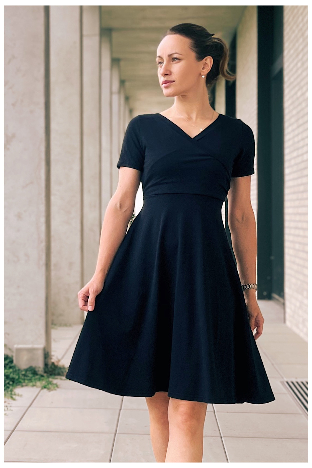 Kojicí šaty Grace s vázankou biobavlna+modal black