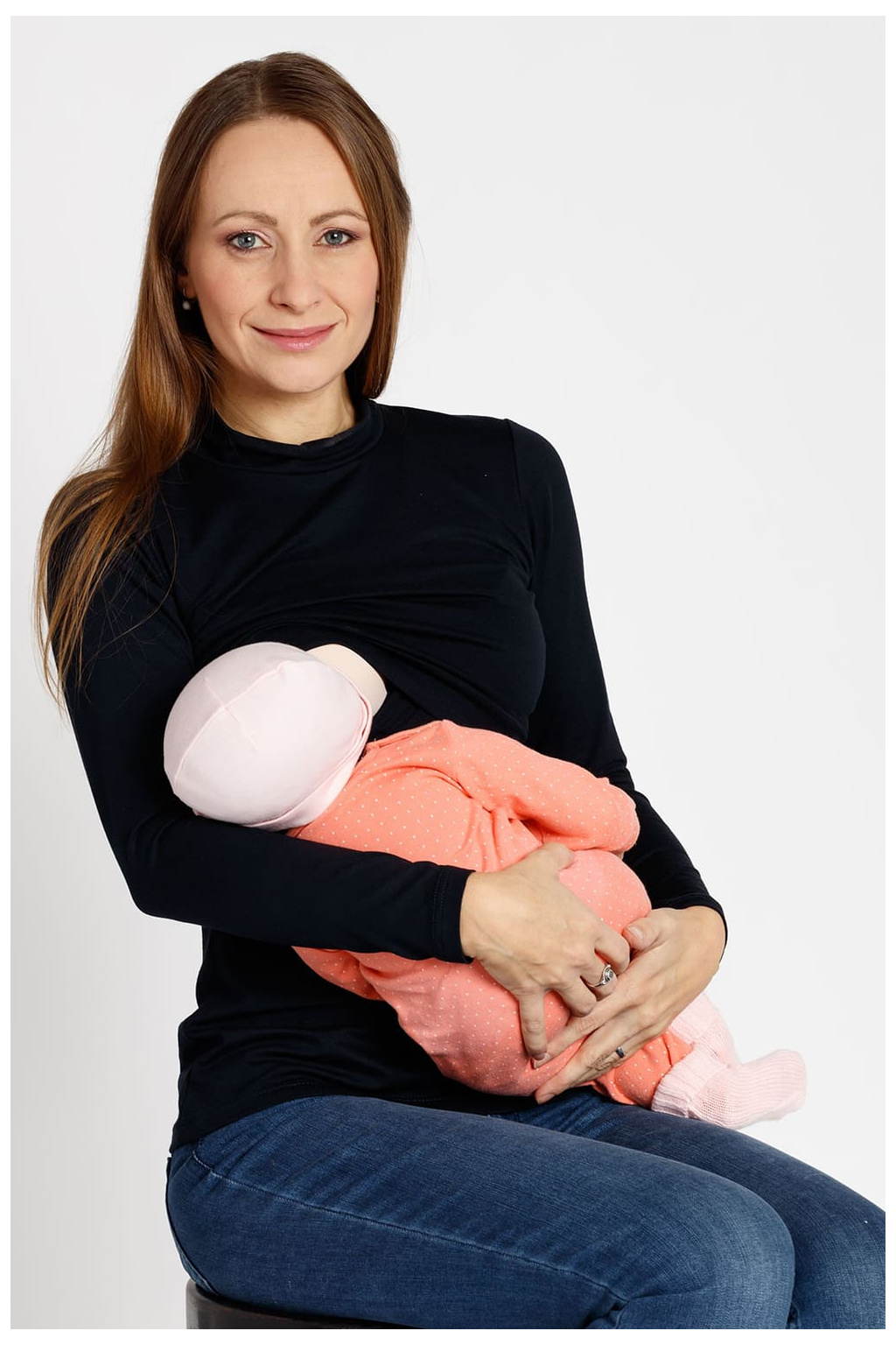 Roláčkové tričko s dlouhým rukávem a dvojitým předním dílem je navrženo pro Váš nejvyšší komfort při kojení miminka - je hebké, prodyšné a nenáročné na údržbu. Ale především se v něm budete cítit opravdu výjimečně.