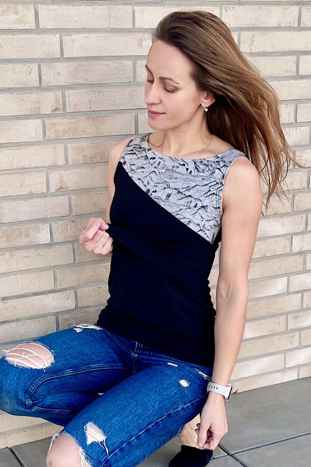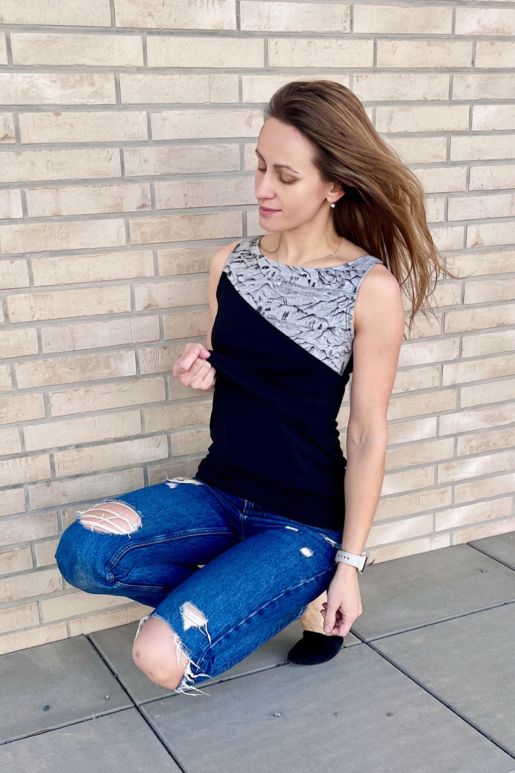 2) Vrchní část pod prsy je zakončena ŠIROKÝM 3CM LEMEM. Ten je nejen praktický pro snadný přístup ke kojení, ale právě díky své šíři krásně vrátí top na obvod hrudníku. Tričko tak dělá krásnou postavu - i s poporodním bříškem.
