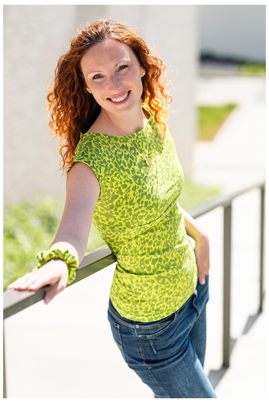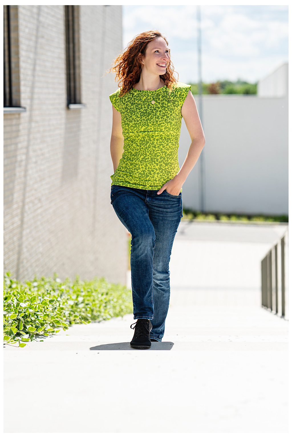 2) Vrchní část je zakončena ŠIROKÝM 3CM LEMEM pod prsy. Ten je nejen praktický pro snadný přístup ke kojení, ale právě díky své šíři krásně vrátí top na obvod hrudníku. Nikde netrčí nevzhledná záclonka a tričko tak dělá krásnou postavu i s poporodním bříškem.