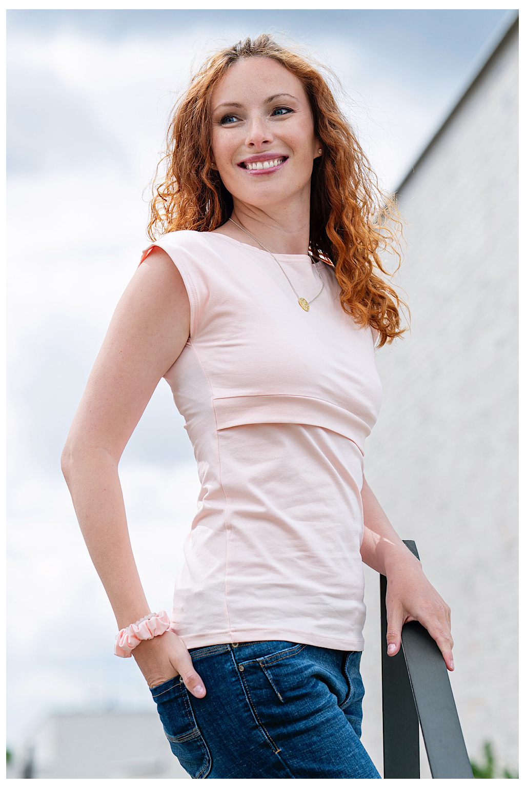 2) Vrchní část pod prsy je zakončena ŠIROKÝM 3CM LEMEM. Ten je nejen praktický pro snadný přístup ke kojení, ale právě díky své šíři krásně vrátí top na obvod hrudníku. Tričko tak dělá krásnou postavu i s poporodním bříškem.