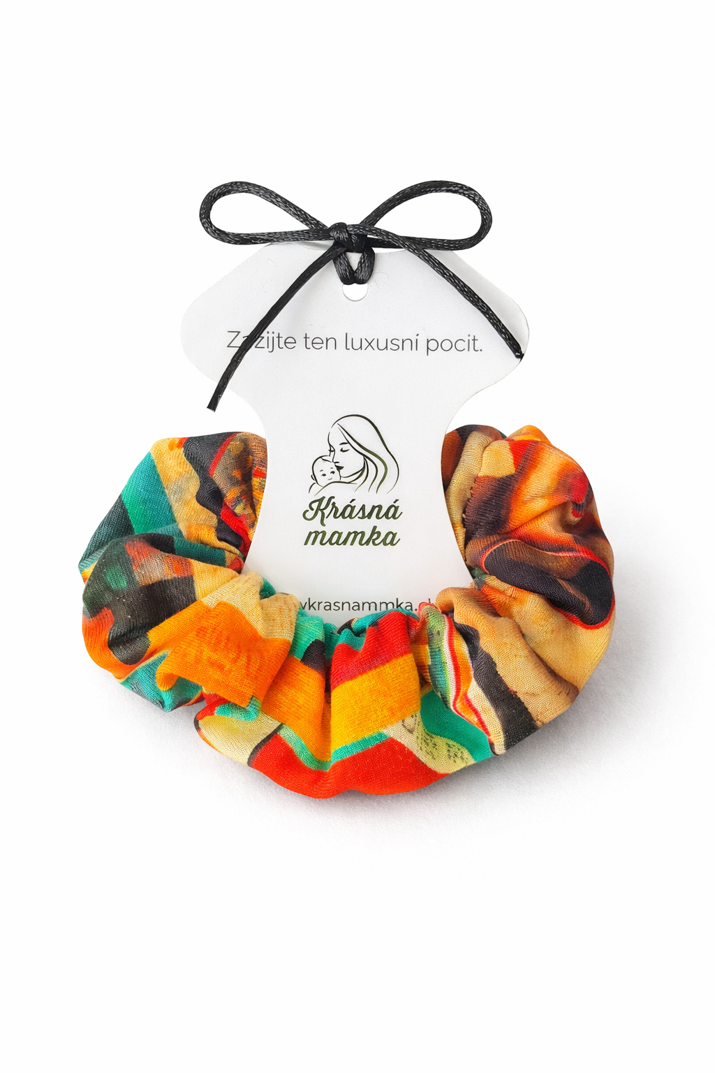 Tahle látková gumička vznikla ze stejného materiálu jako naše šaty a trička.