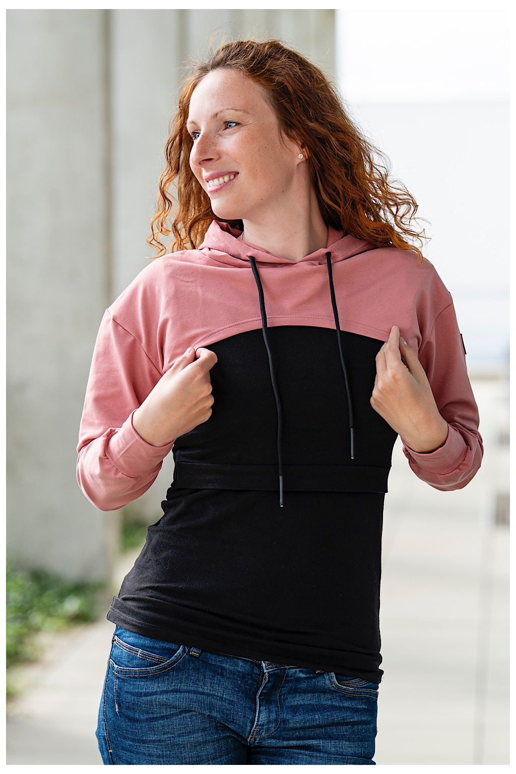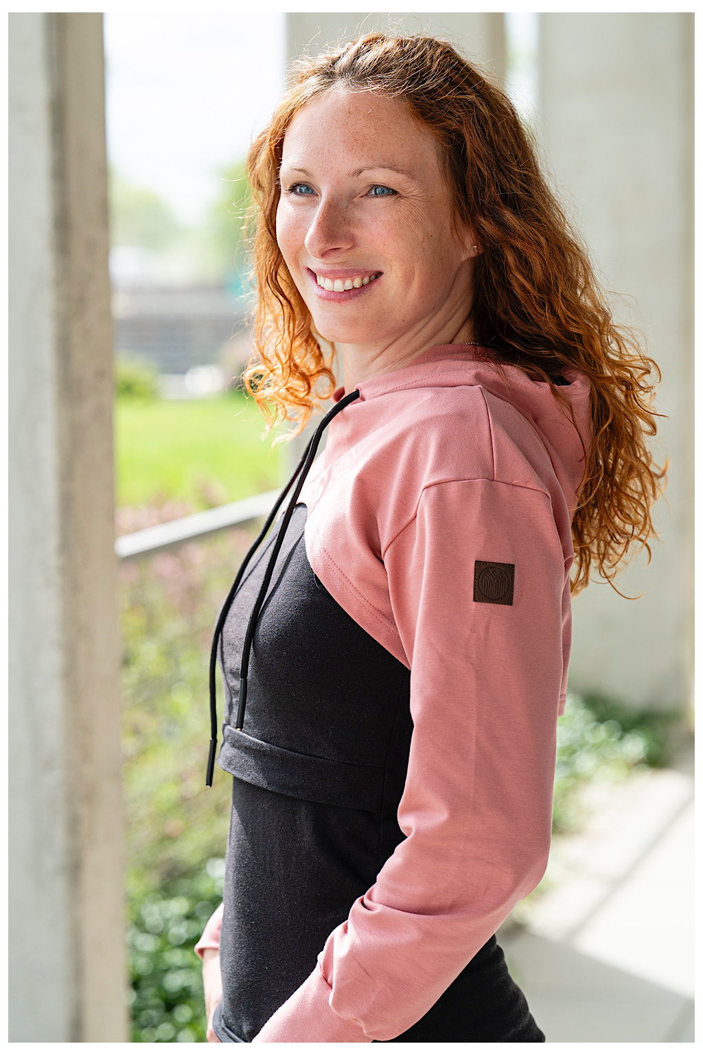 Tahle pudrově růžová mikina z příjemného bavlněného French Terry úpletu je jako stvořená pro chvíle, kdy chceš cítit pohodlí, ale zároveň si zachovat punc moderního svěžího outfitu při péči o miminko.